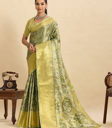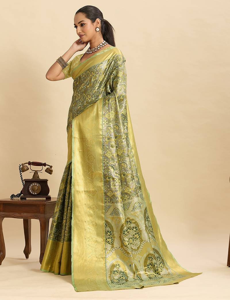 Parrot green silk blend printed saree with blouse
