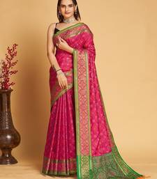 Pink silk blend printed saree with blouse