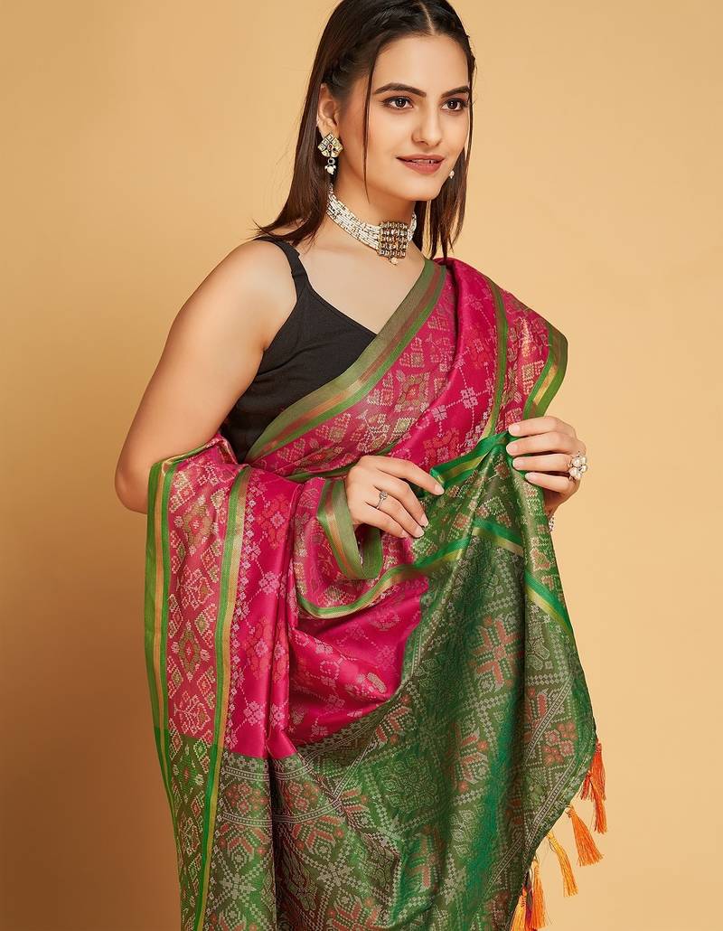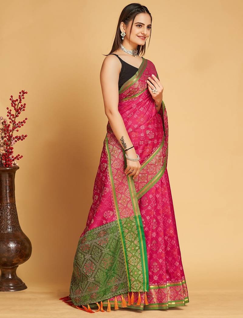 | Product Name | Pink Silk Blend Printed Saree With Blouse | |