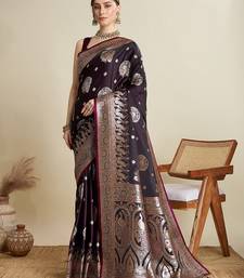 | • | Saree | : | Color- Purple / Fabric- Satin |
