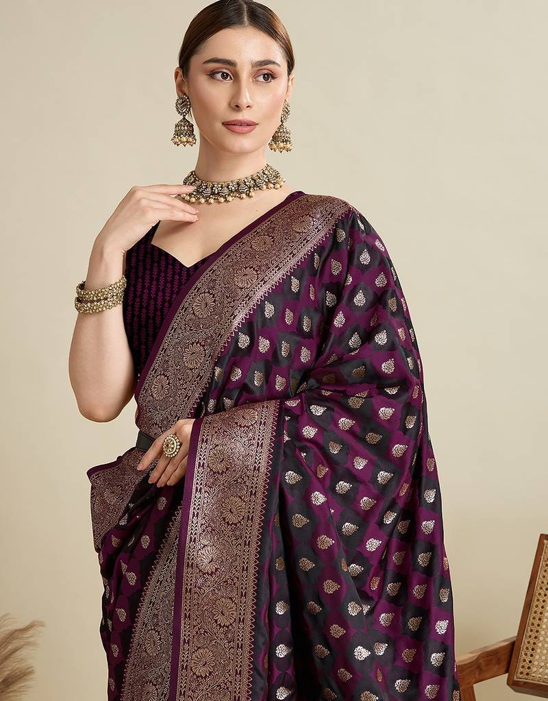 Product Name Purple Satin Printed Saree With Blouse