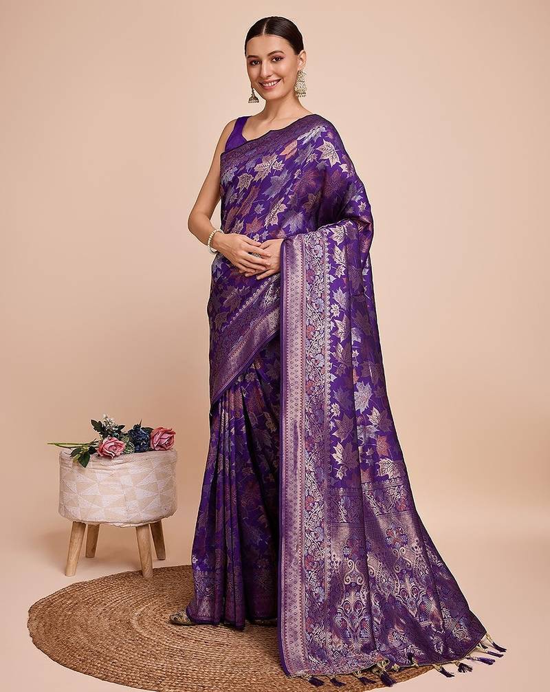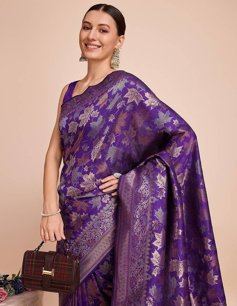 | Product Name | Purple Silk Blend Printed Saree With Blouse | |