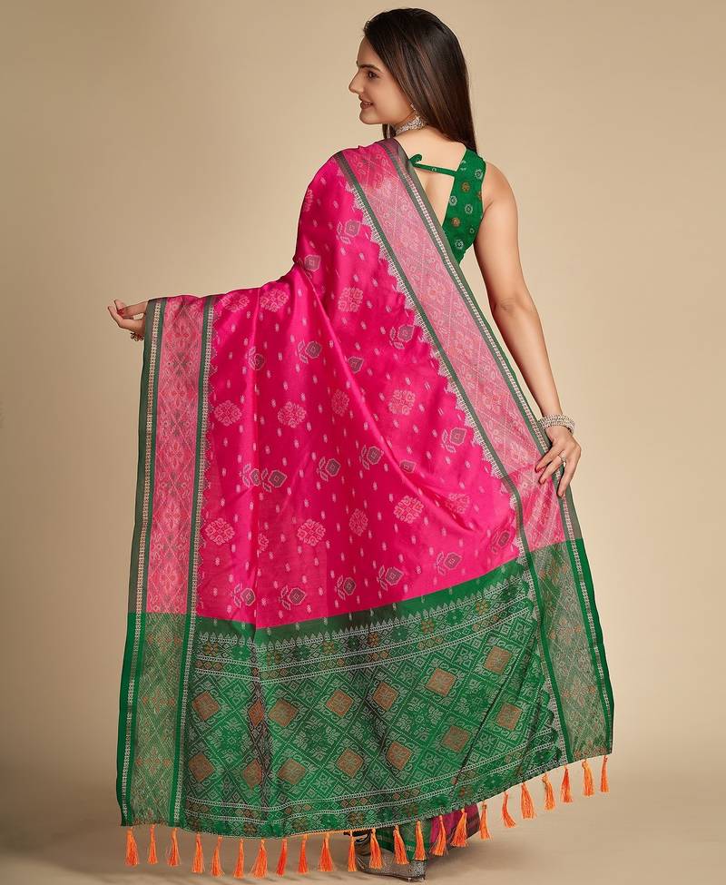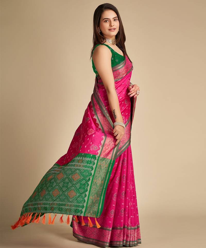 | Product Name | Rani Pink Silk Blend Printed Saree With Blouse | |