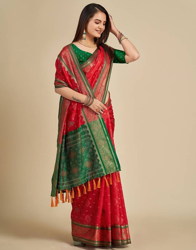 | Product Name | Red Silk Blend Printed Saree With Blouse | |