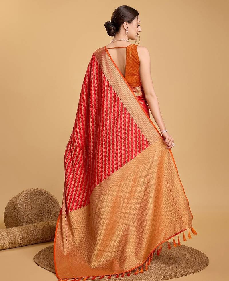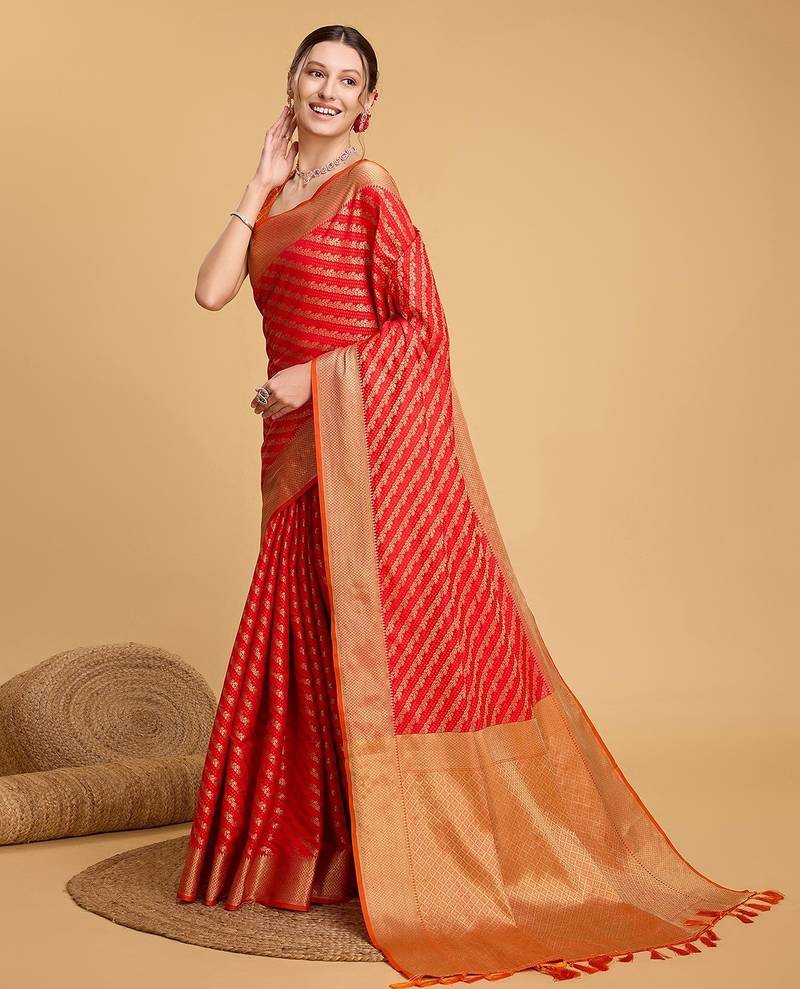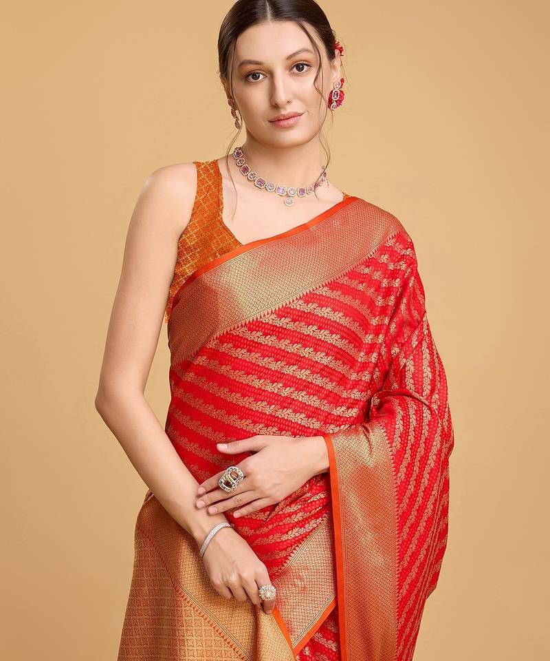 | Product Name | Red Silk Blend Printed Saree With Blouse | |