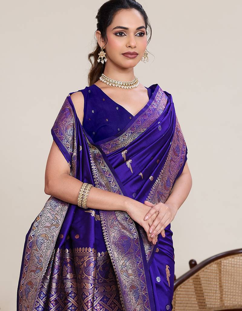 | Product Name | Royal Blue Silk Blend Printed Saree With Blouse | |