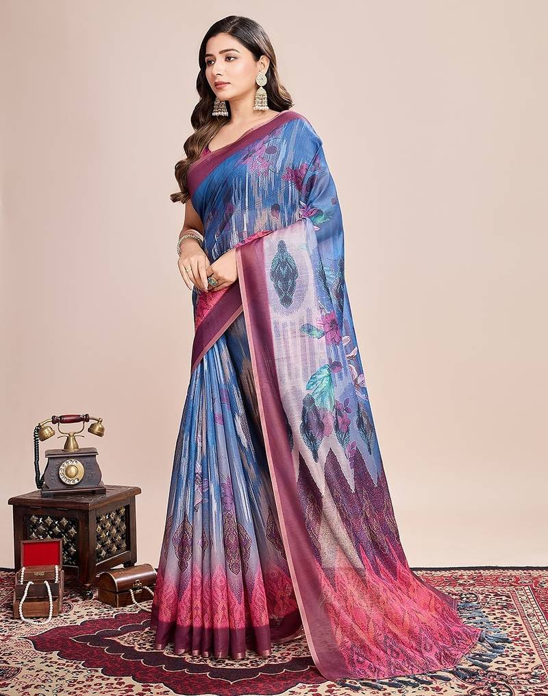 | Product Name | Teal Linen Printed Saree With Blouse | |