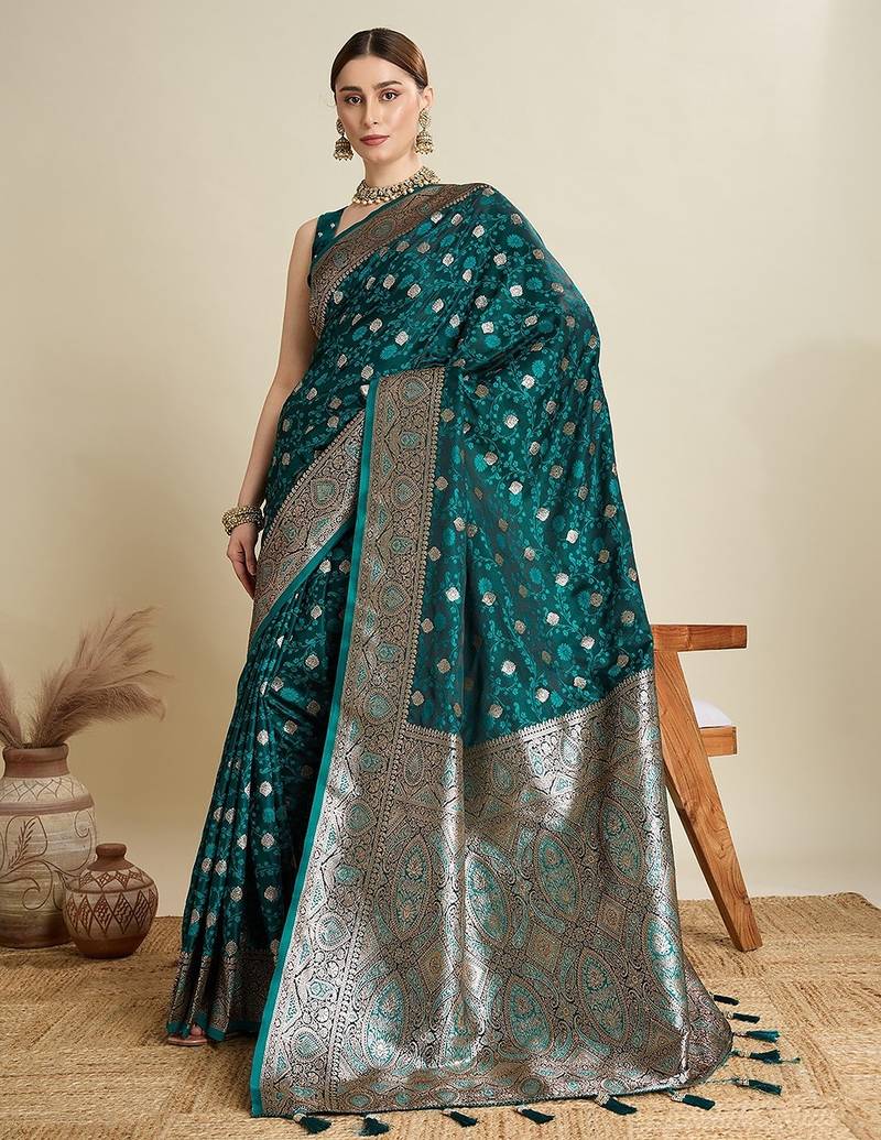 | • | Saree | : | Color- Teal / Fabric- Satin |