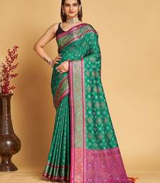 Teal silk blend printed saree with blouse