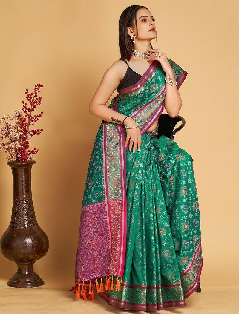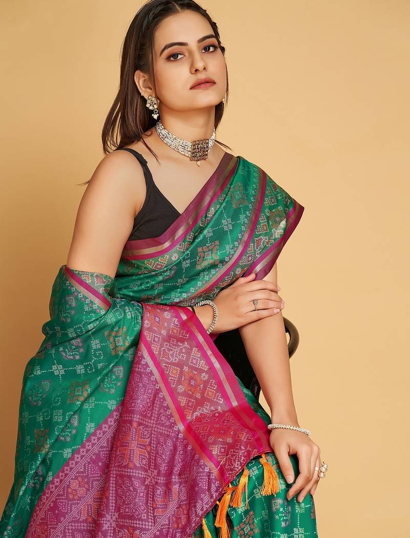 | Product Name | Teal Silk Blend Printed Saree With Blouse | |