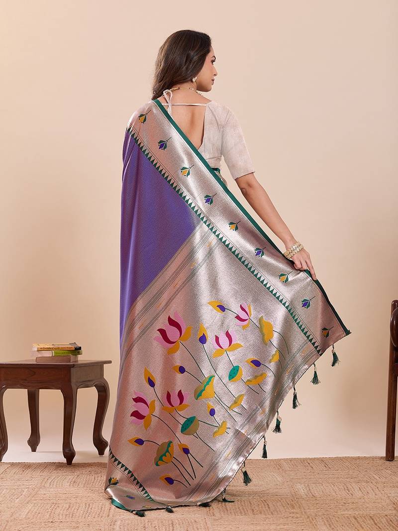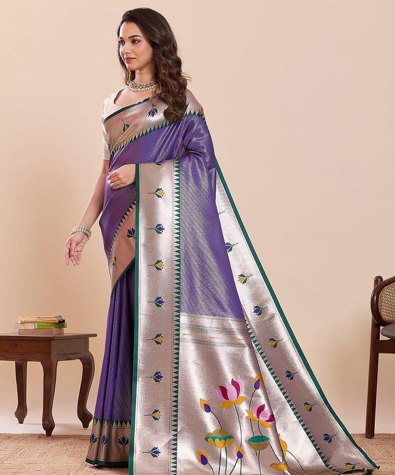 Product Name Violet Silk Blend Printed Saree With Blouse
