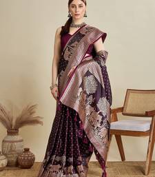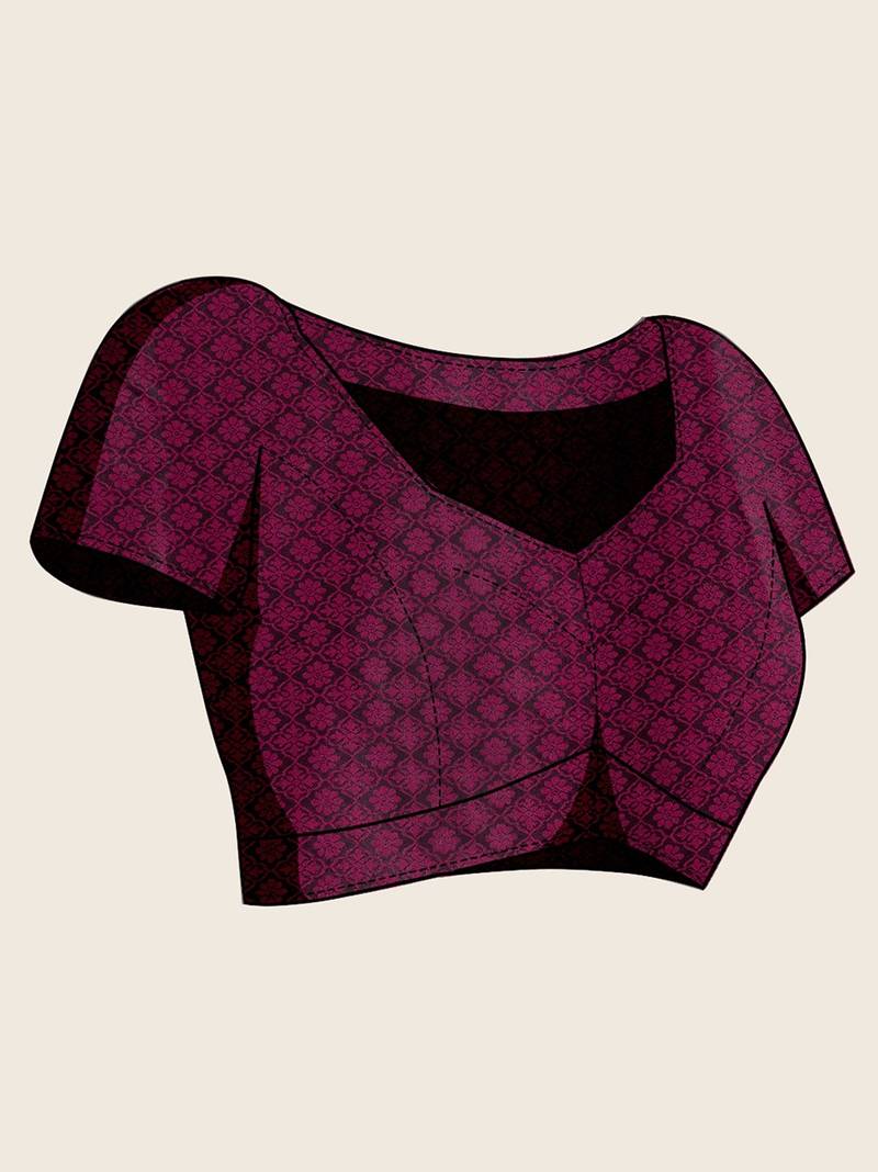 Wine satin printed saree with blouse