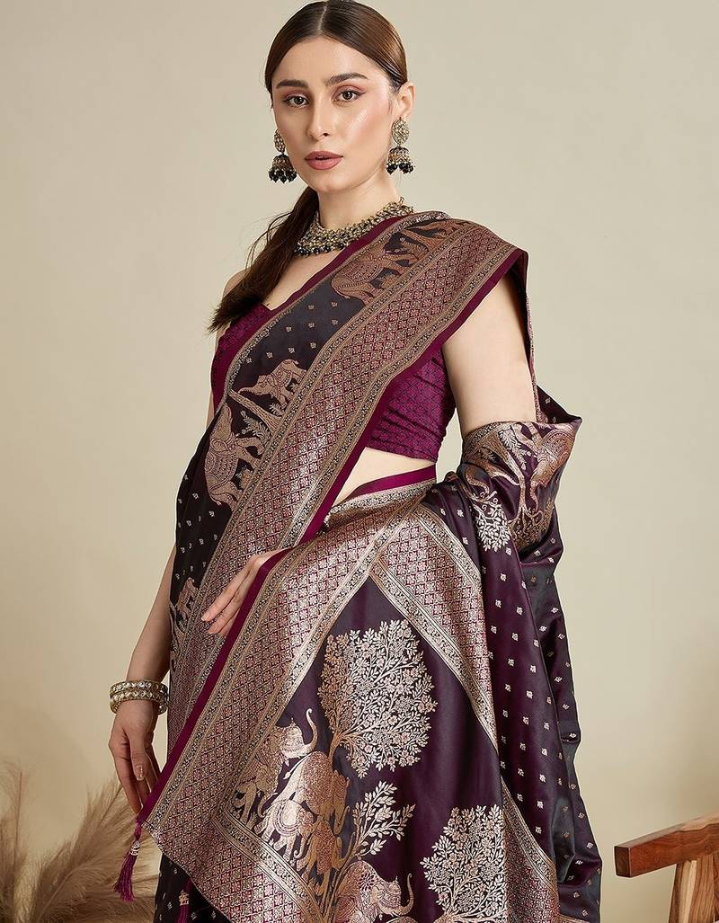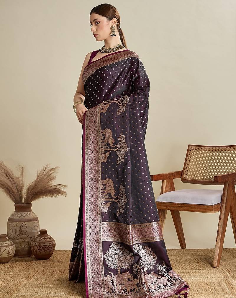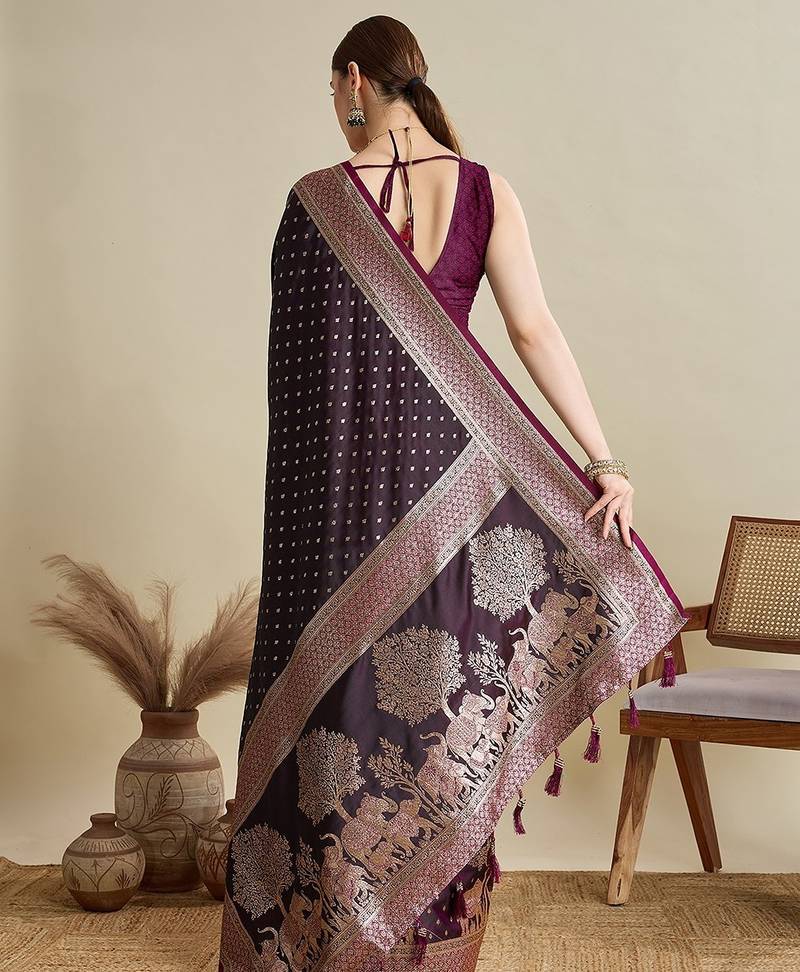 | Product Name | Wine Satin Printed Saree With Blouse | |