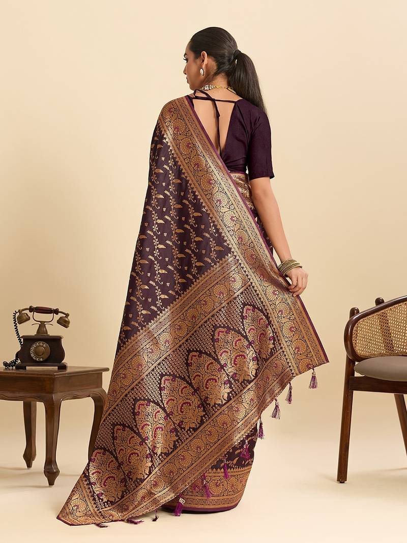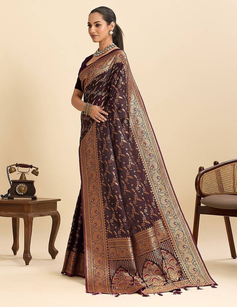 | Product Name | Wine Satin Printed Saree With Blouse | |