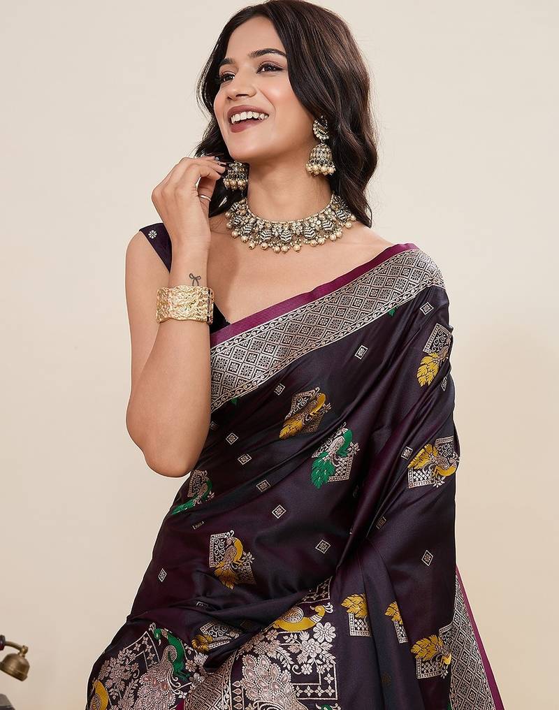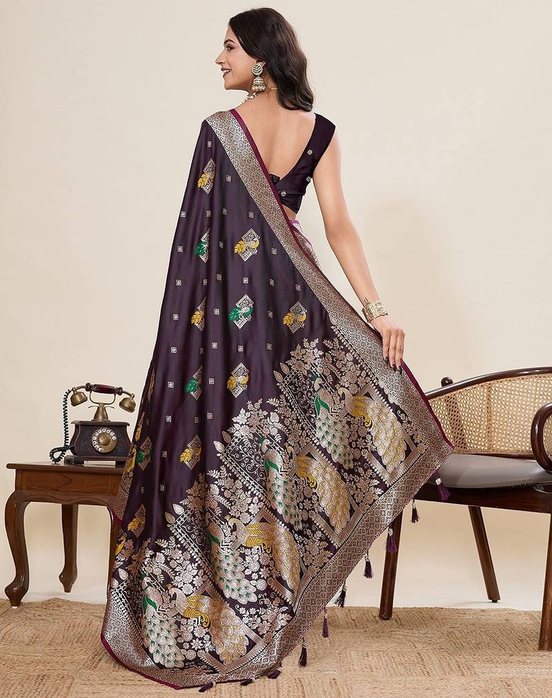 | Product Name | Wine Silk Blend Printed Saree With Blouse | |