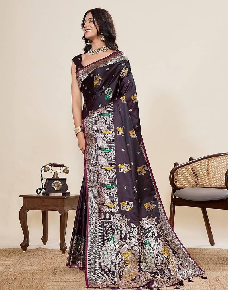 | • | Saree | : | Color- Wine / Fabric- Silk Blend |