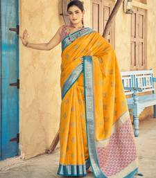 Yellow plain raw silk silk-blend-sarees saree with blouse