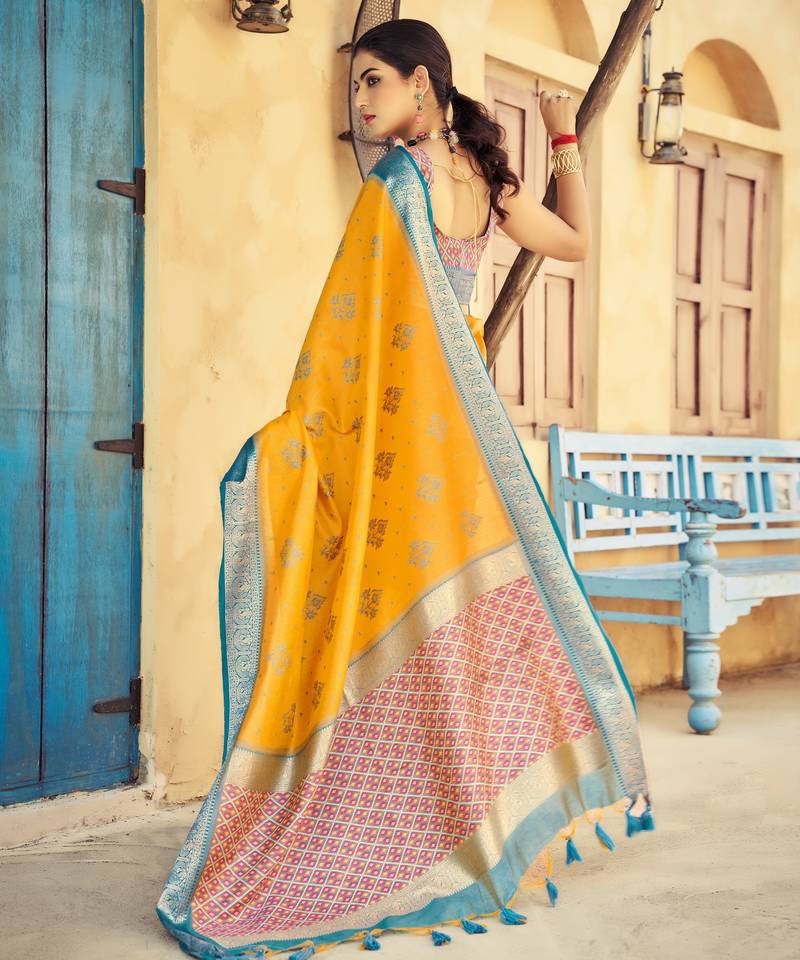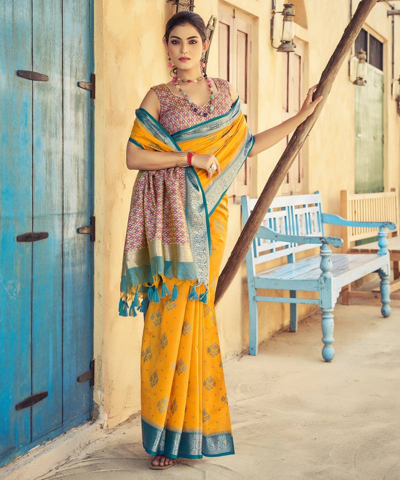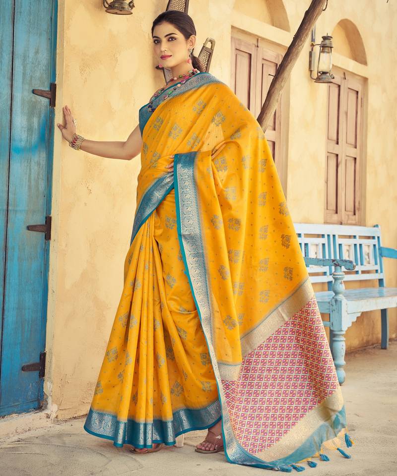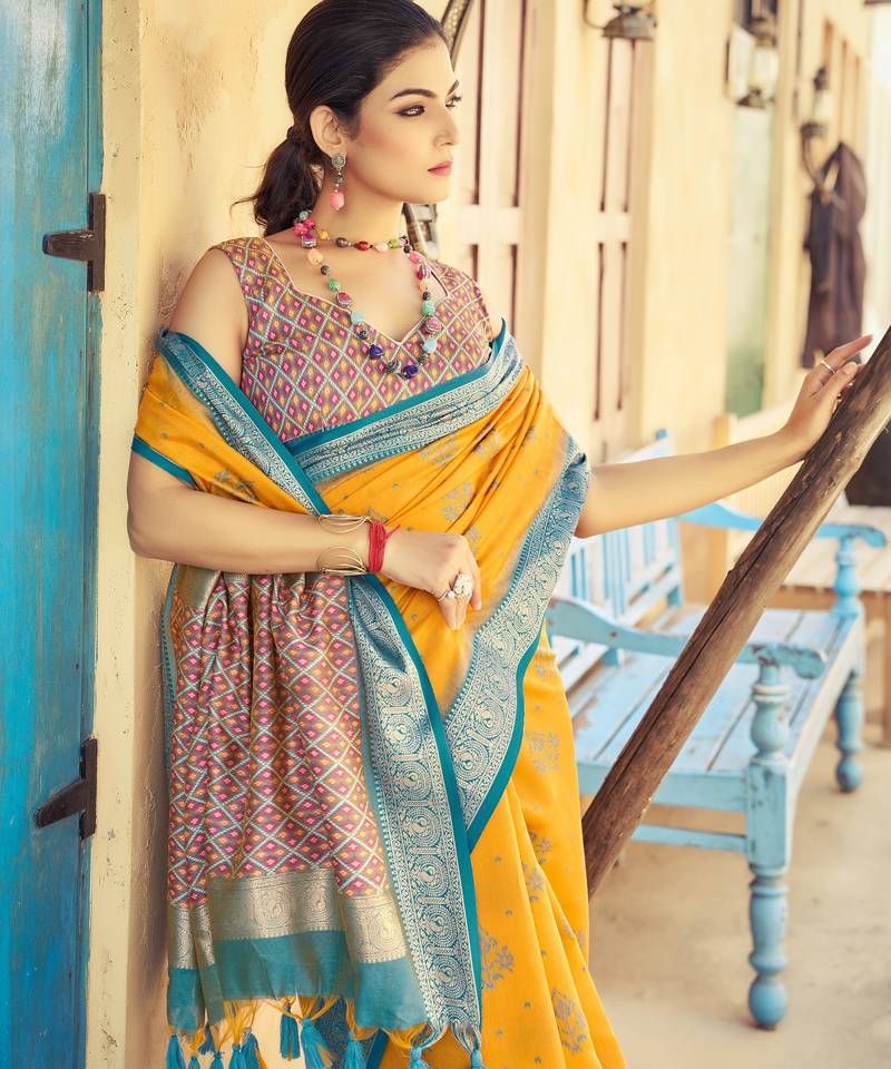 | Product Name | Yellow Plain Raw Silk Silk Blend Sarees Saree With Blouse | |