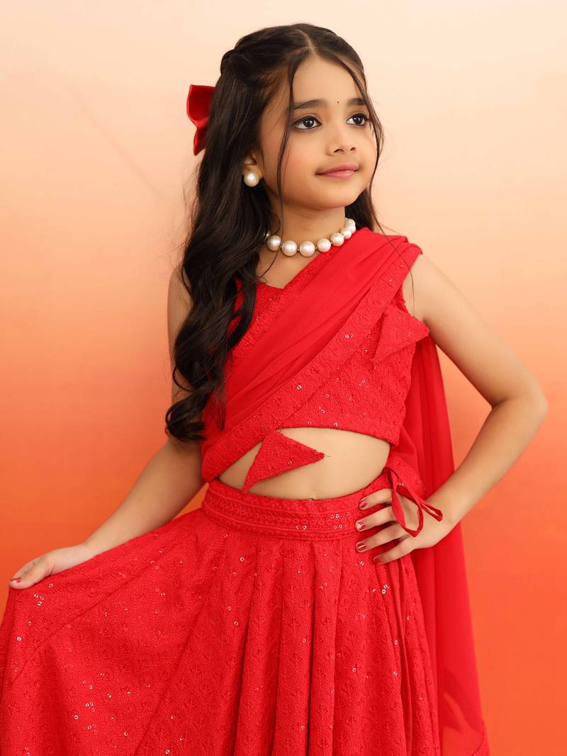 | Product Name | Elegant Red Chikankari Lehenga Blouse With Dupatta For Girls | |