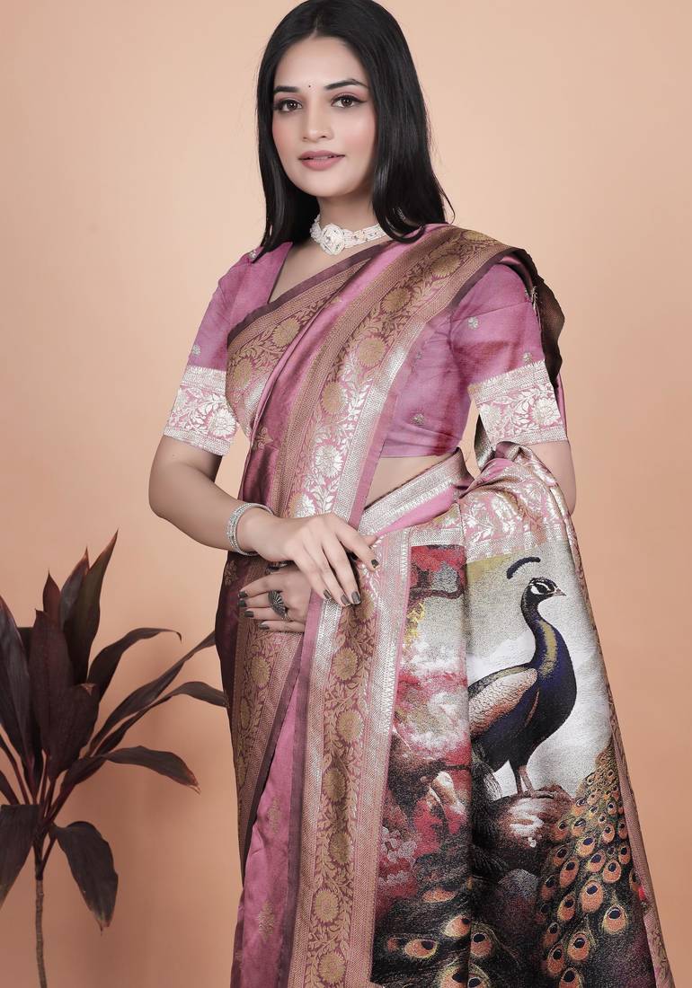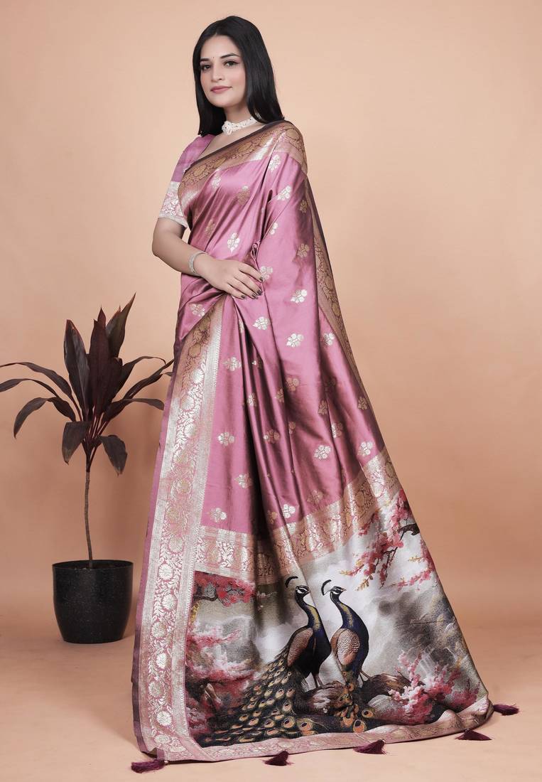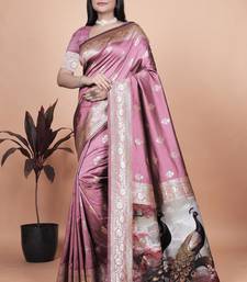 Baby pink woven designer pallu banarasi art silk saree