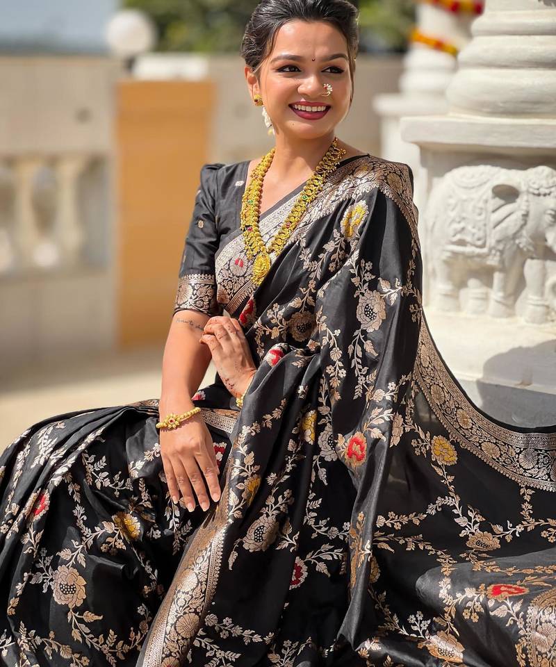 | Product Name | Black Elegant Art Silk Woven Saree With Rich Zari Border | |