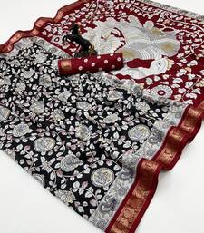 | Product Name | Black Viscose Silk Saree With Peacock Zari & Bagru Print | |