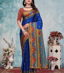 | • | Saree | : | Color- Blue / Fabric- Art Silk |