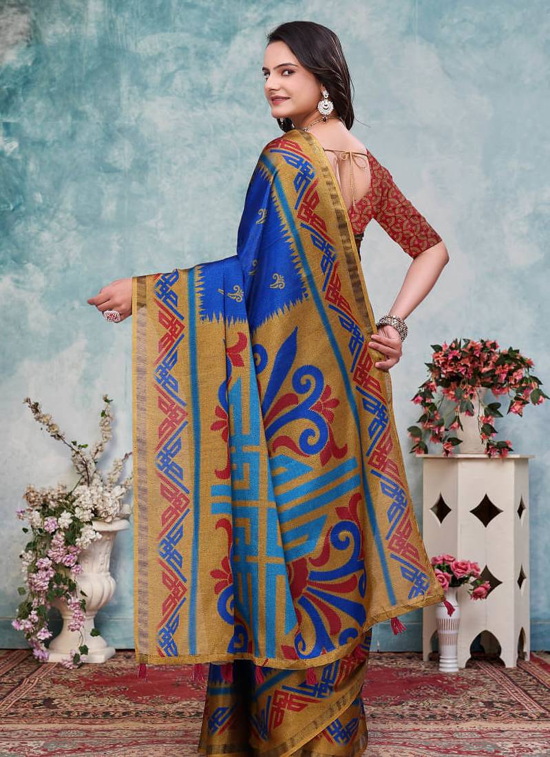 | Product Name | Blue Printed Art Silk Designer Pallu Saree | |