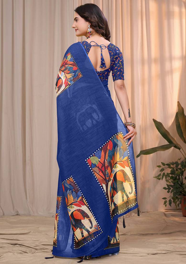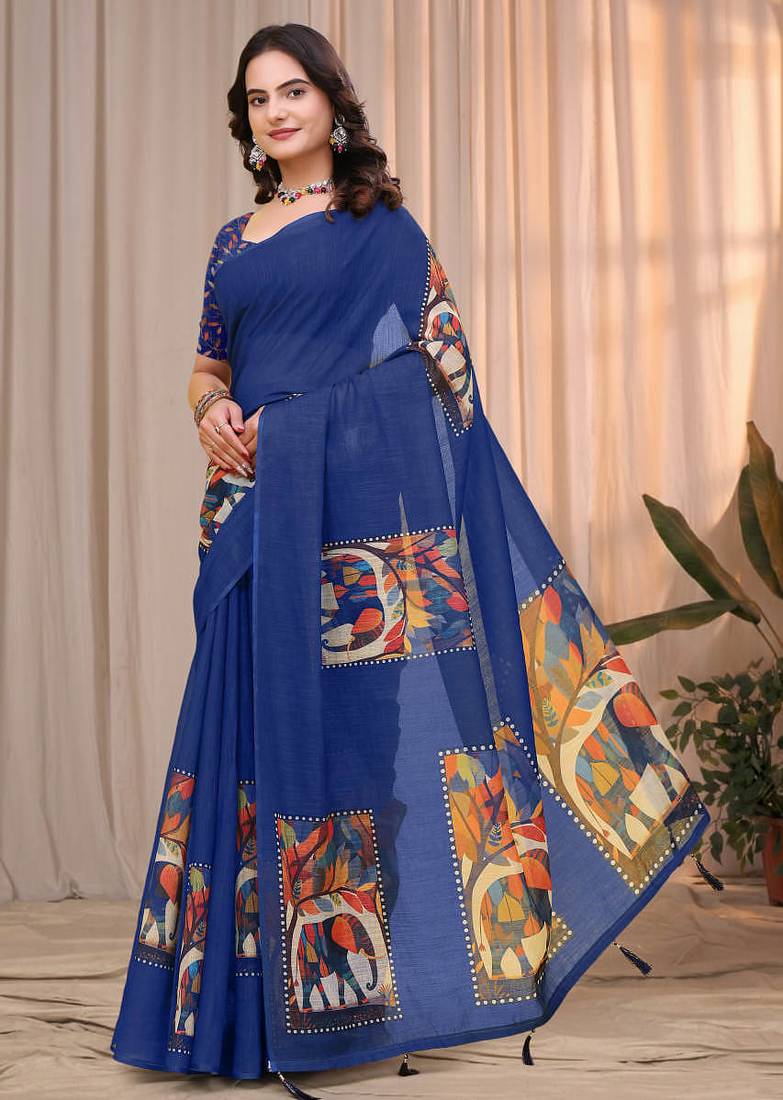 | Product Name | Blue Printed Art Silk Designer Pallu Saree | |