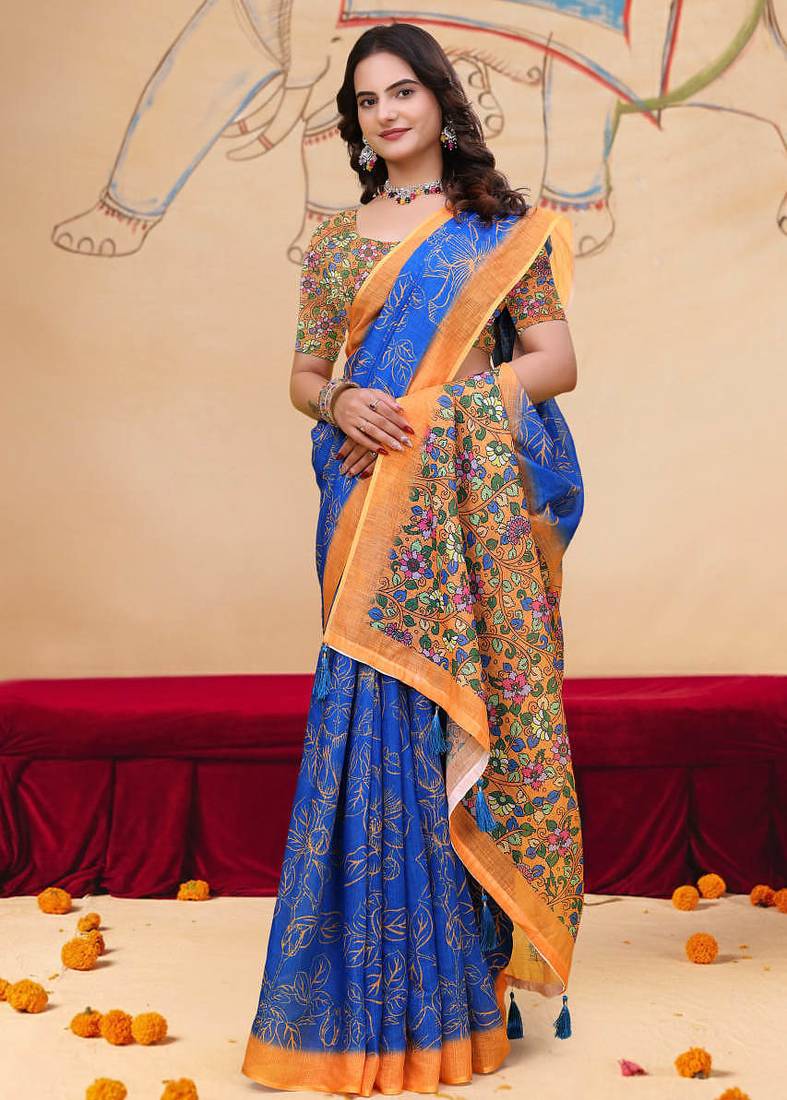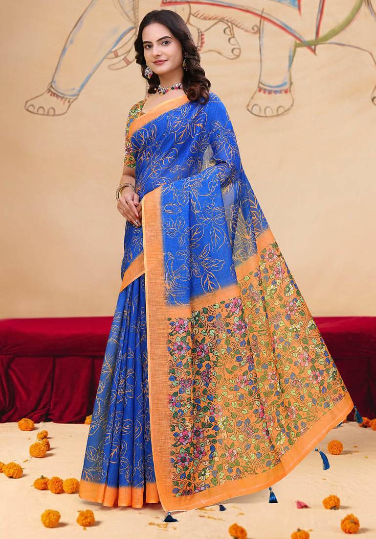 | Product Name | Blue Printed Art Silk Designer Pallu Saree | |