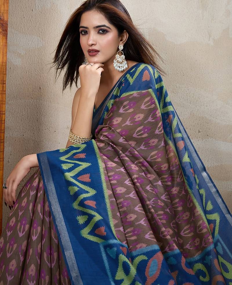 | Product Name | Brown Printed Art Silk Designer Pallu Saree | |