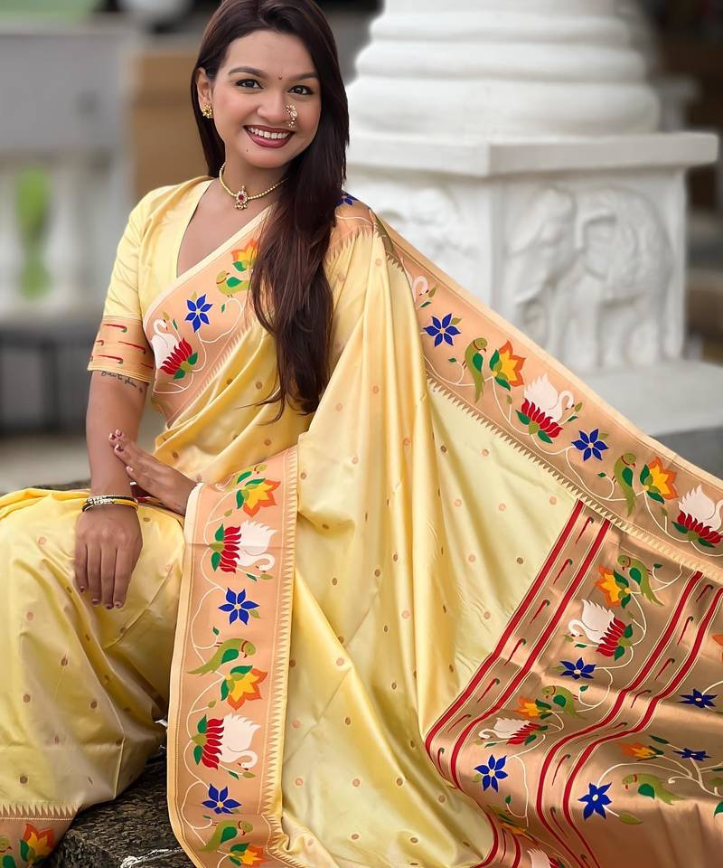 | Product Name | Cream Elegant Art Silk Woven Saree With Rich Zari Border | |