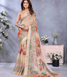 Cream printed art silk designer pallu saree