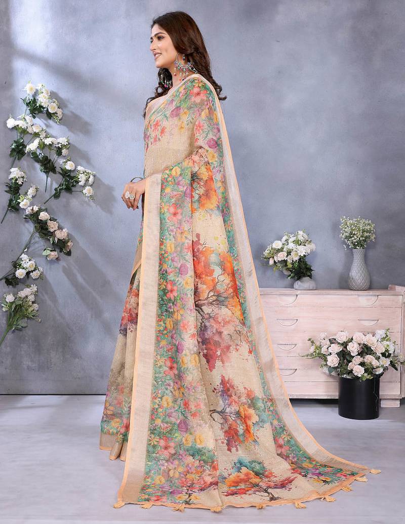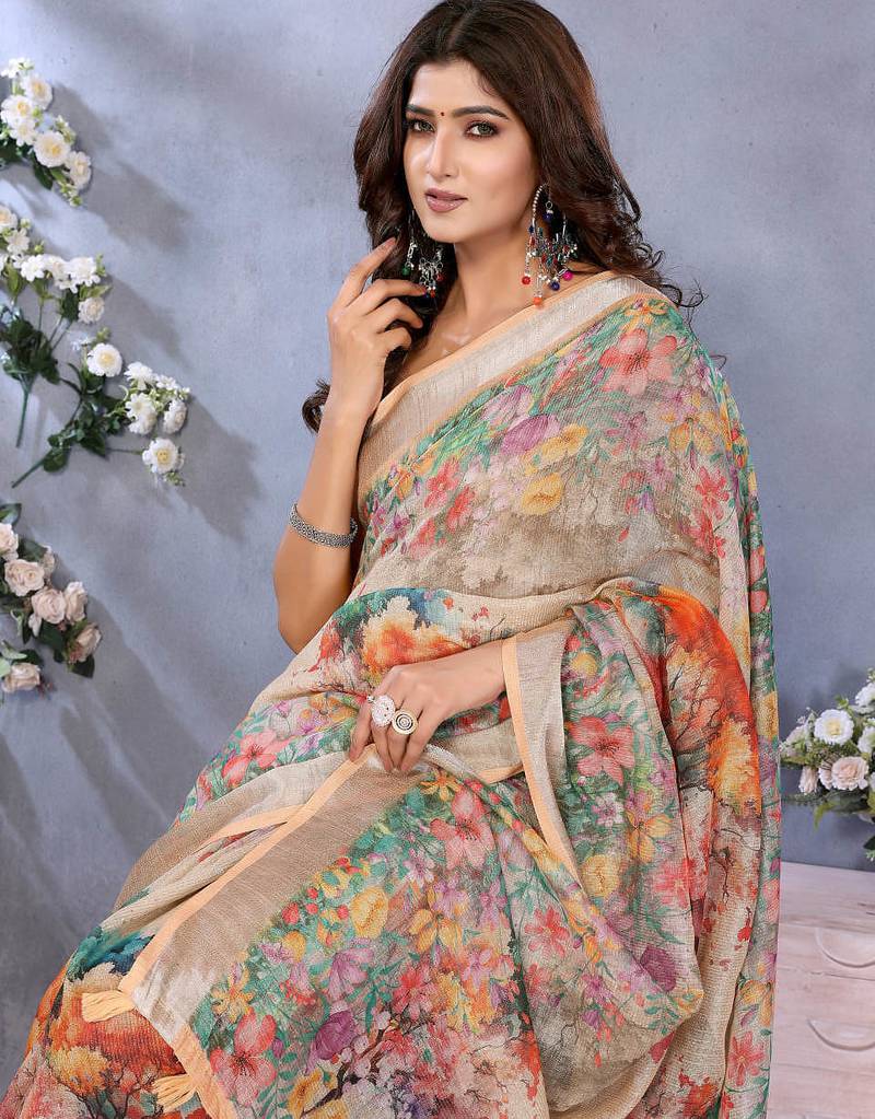 | Product Name | Cream Printed Art Silk Designer Pallu Saree | |