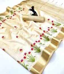 | Product Name | Cream Tissue Kerala Kasavu Saree With Floral Embroidery Design | |