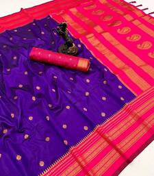 Dark purple soft silk saree with narayan border & dual zari motifs