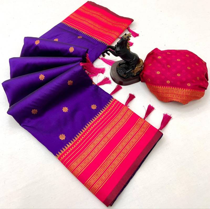 | Product Name | Dark Purple Soft Silk Saree With Narayan Border & Dual Zari Motifs | |