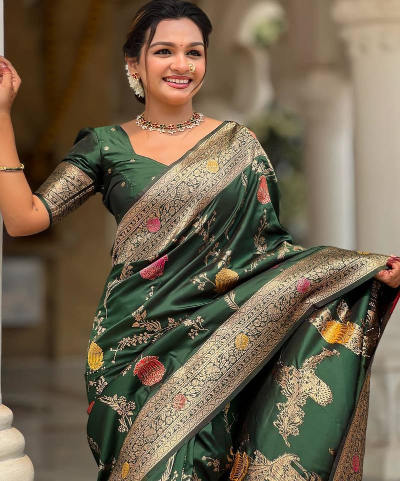 | Product Name | Green Elegant Art Silk Woven Saree With Rich Zari Border | |