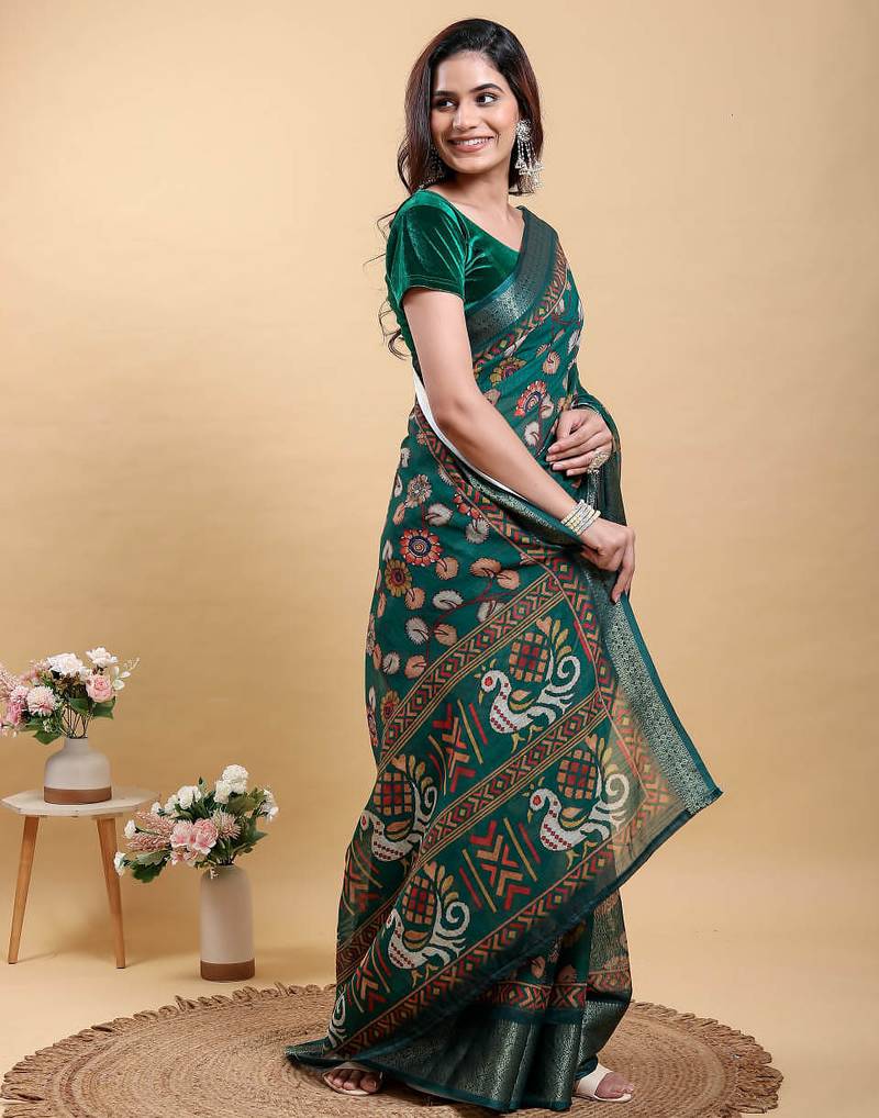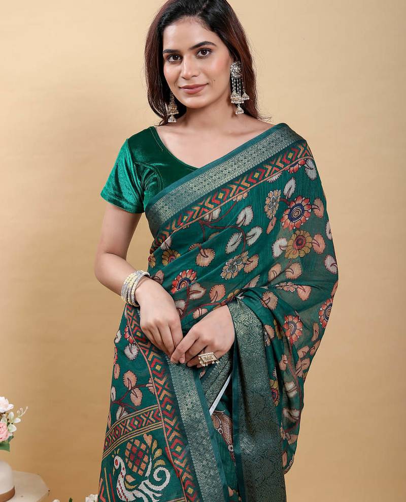 | Product Name | Green Printed Art Silk Designer Pallu Saree | |