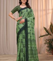 Green printed art silk designer pallu saree