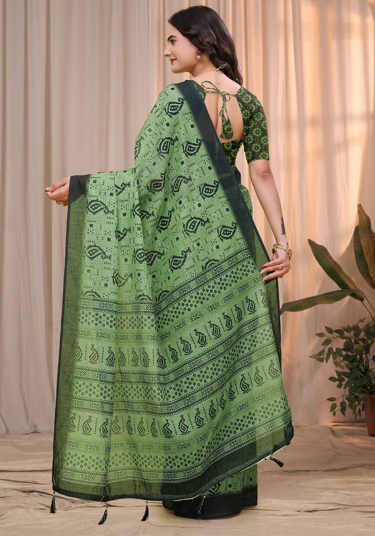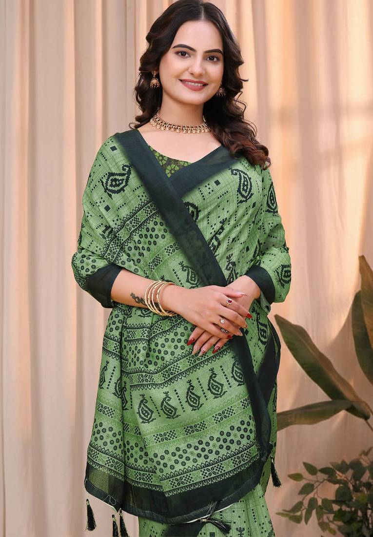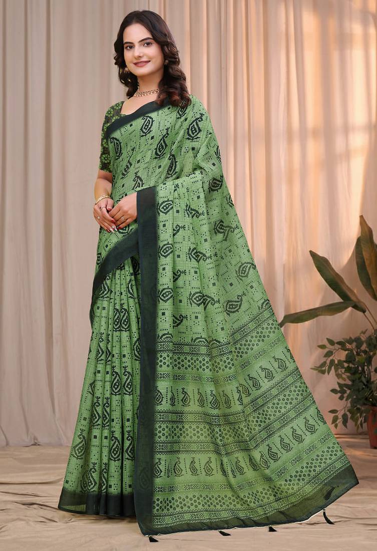 | Product Name | Green Printed Art Silk Designer Pallu Saree | |