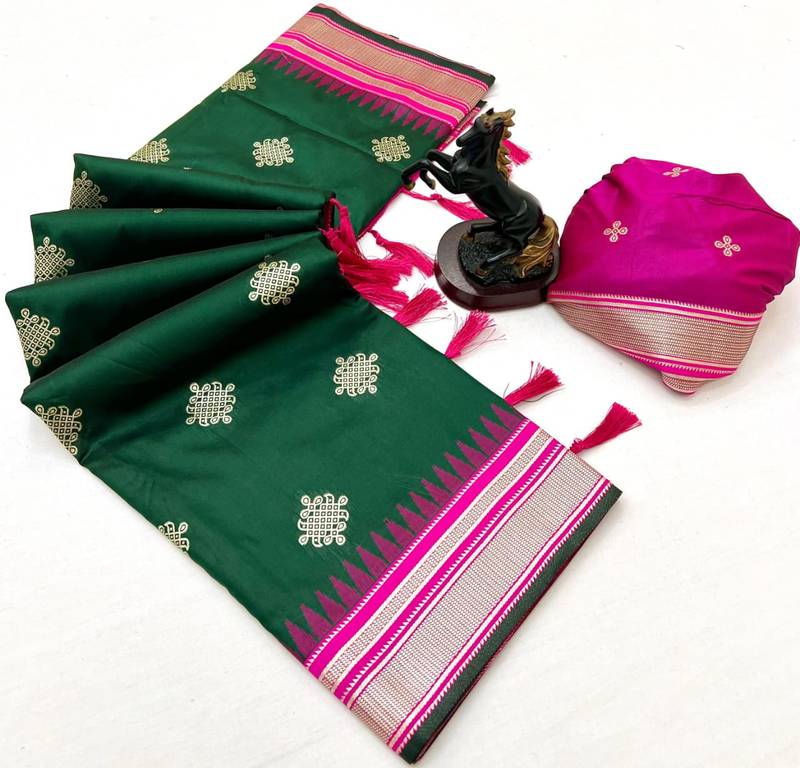 | Product Name | Green Soft Silk Saree With Kolam Zari Motifs & Designer Pallu | |