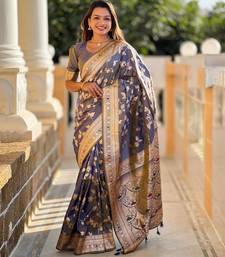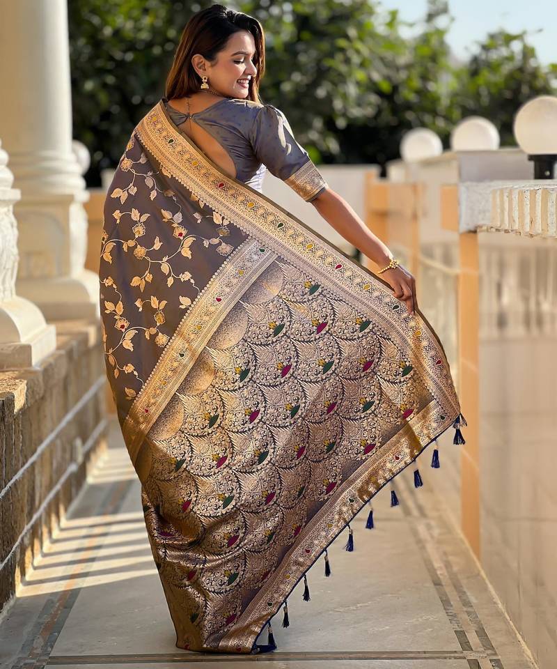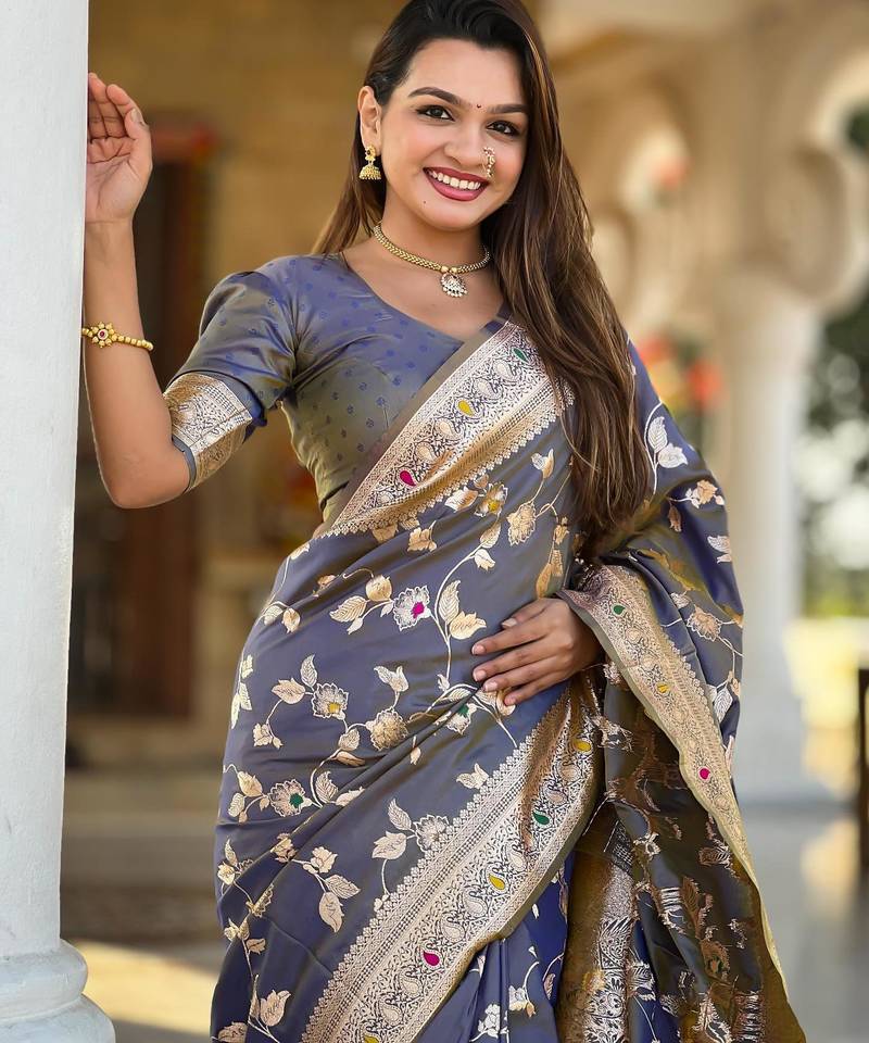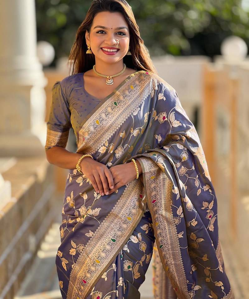 Product Name Grey Elegant Art Silk Woven Saree With Rich Zari Border