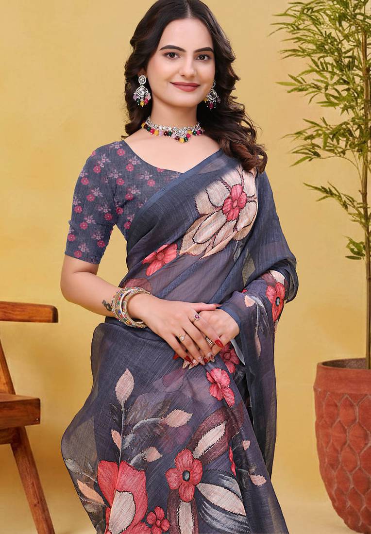 | Product Name | Grey Printed Art Silk Designer Pallu Saree | |
