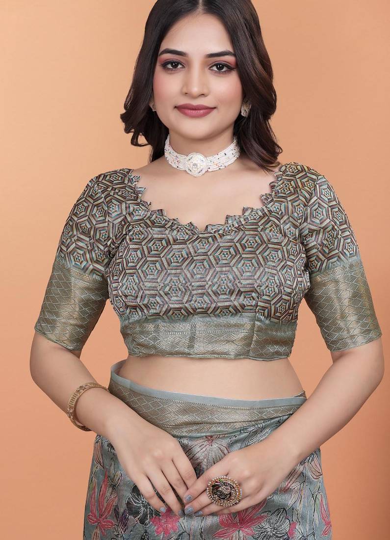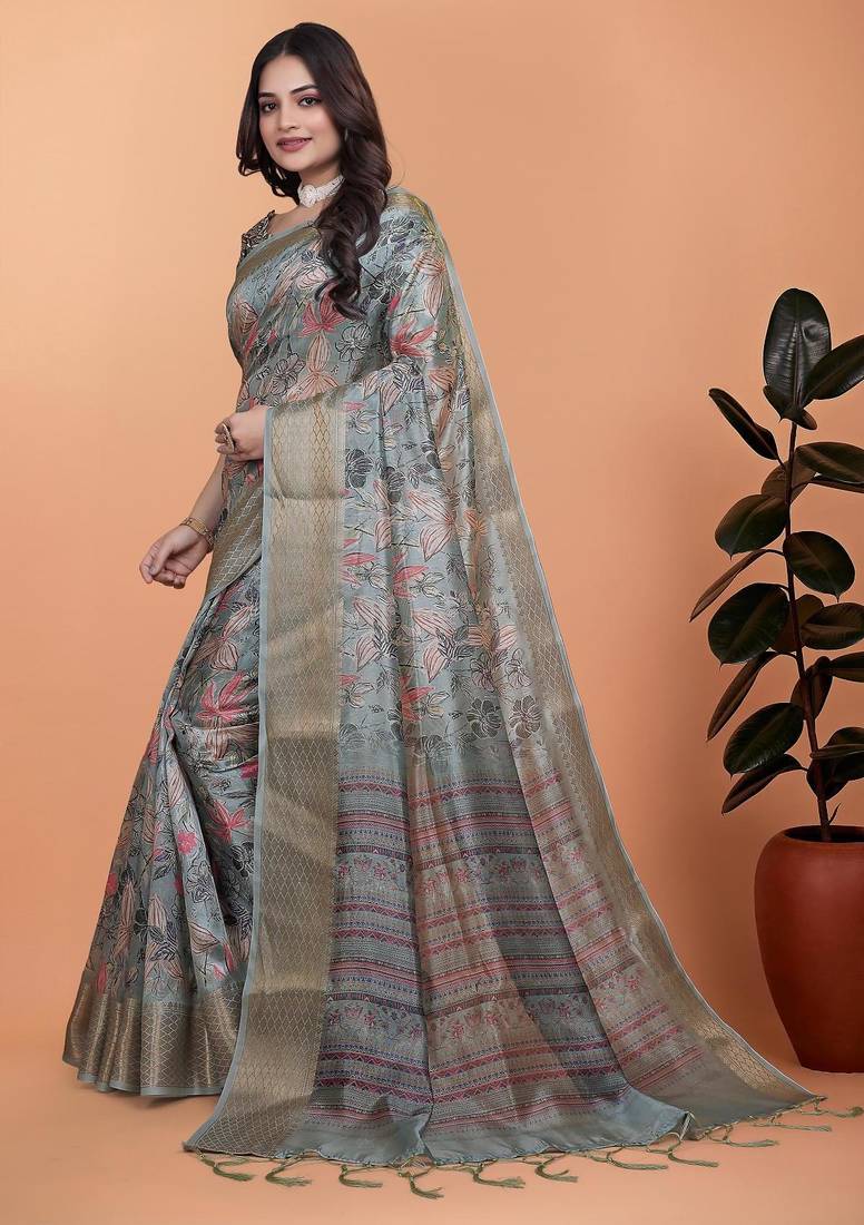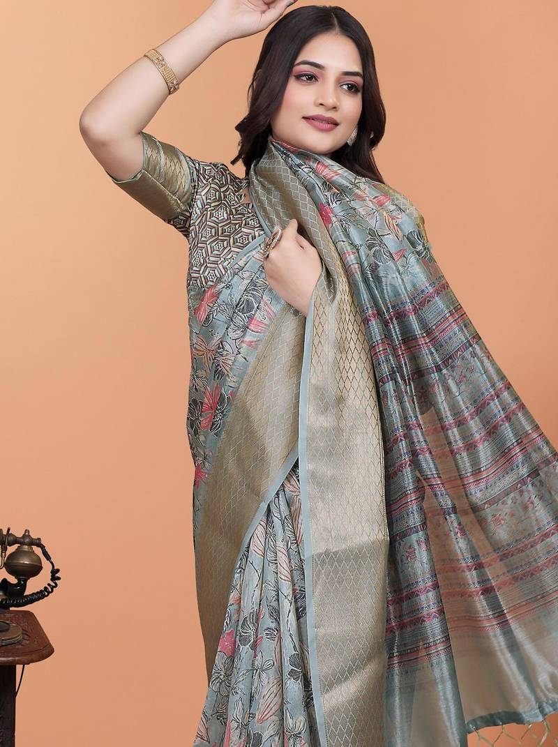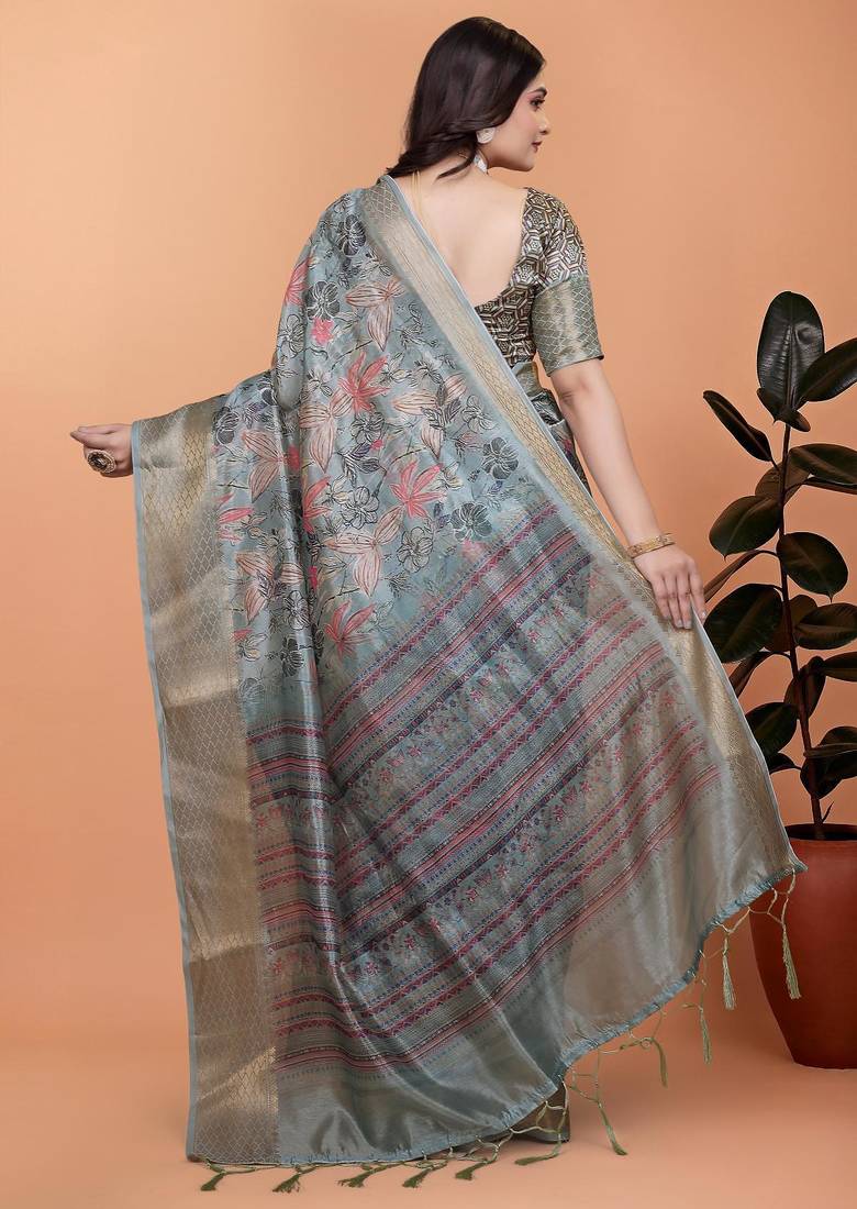 | Product Name | Grey Printed Art Silk Designer Pallu Saree | |