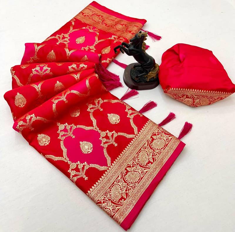 | Product Name | Hot Pink Banarasi Satin Mashroo Silk Saree With Multicolor Zari Motifs | |