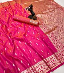 Hot pink banarasi silk saree with embossed weaving design