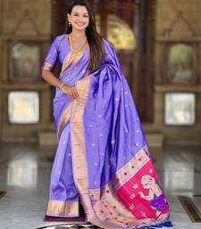 Lavender elegant art silk woven saree with rich zari border