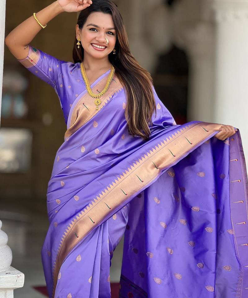 | Product Name | Lavender Elegant Art Silk Woven Saree With Rich Zari Border | |