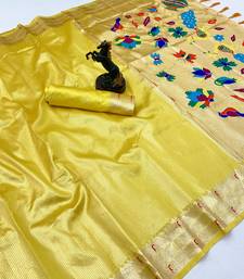 Lemon tissue silk paithani saree with floral zari weaving